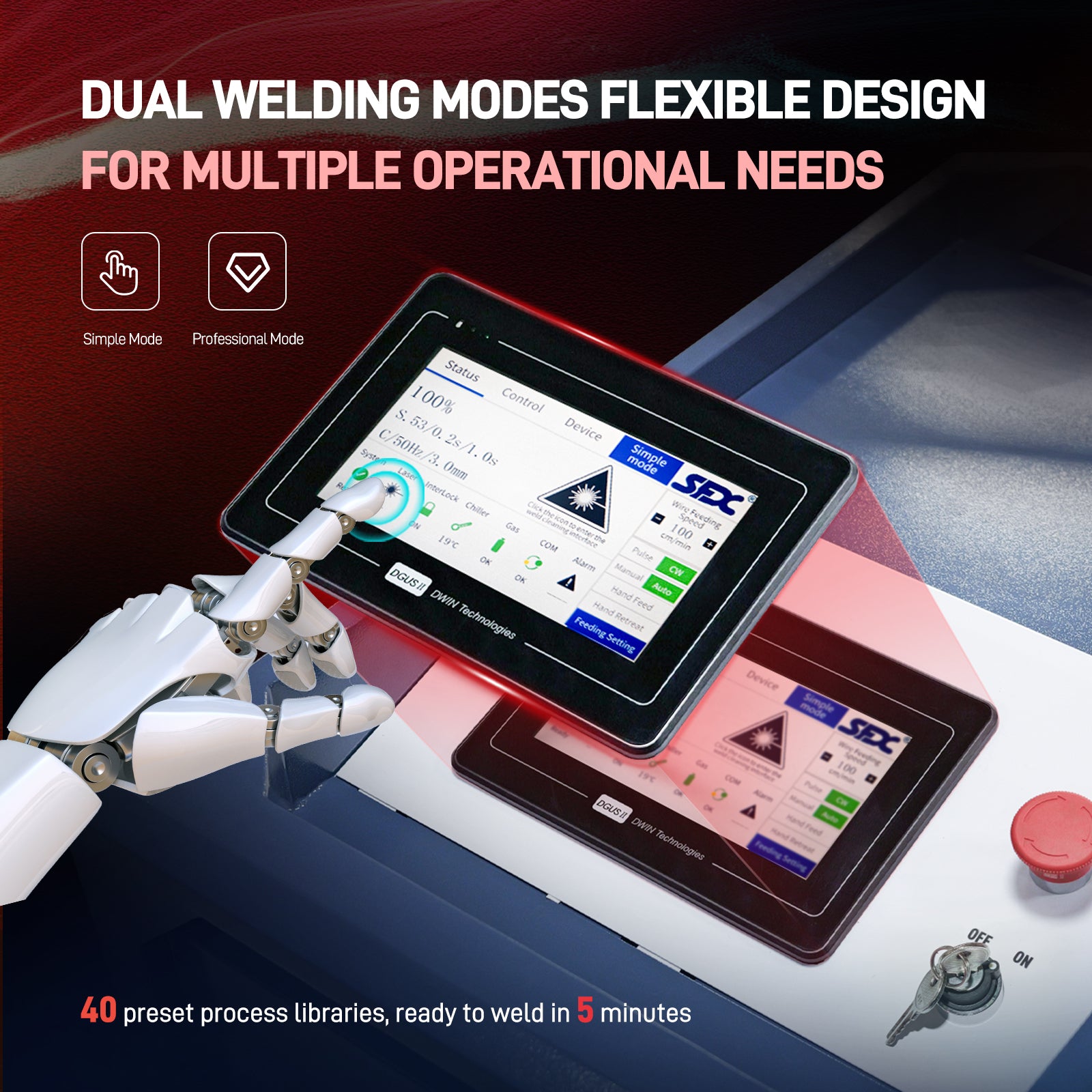 - Dual Welding Modes: Features both "Simple Mode" for beginners and "Professional Mode" for experts, with 40 preset process libraries for various materials and joint types—be ready to weld in 5 minutes.