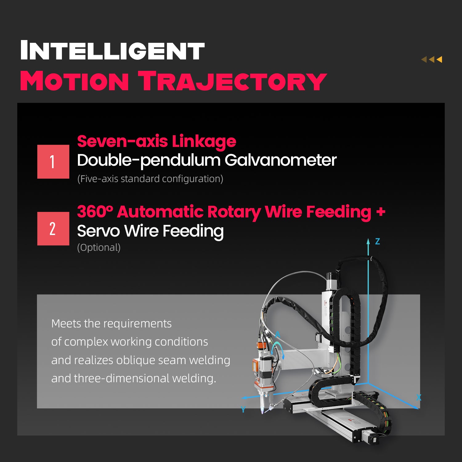 [Five/Seven-Axis Linkage Flexible Operation]Featuring intelligent motion trajectory and seven-axis linkage, our automatic welding machine provides unparalleled flexibility in adapting to various complex working conditions. The double-pendulum galvanometer and 360° automatic rotary wire feeding enable precise and versatile operation. With servo wire feeding, this machine guarantees accurate and reliable results.