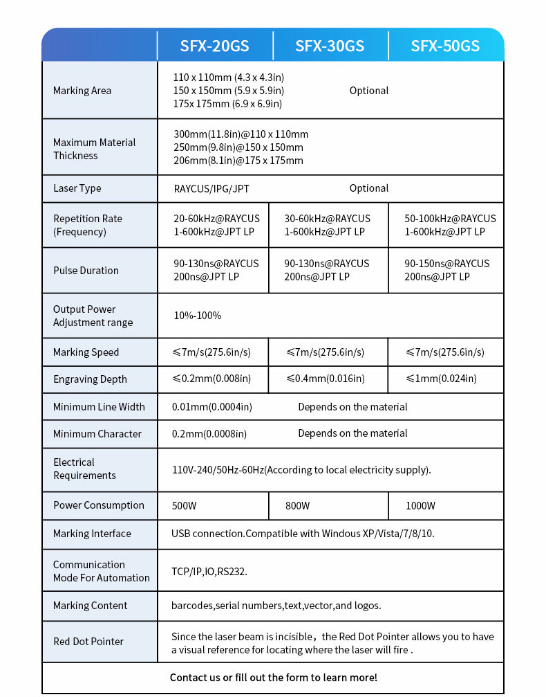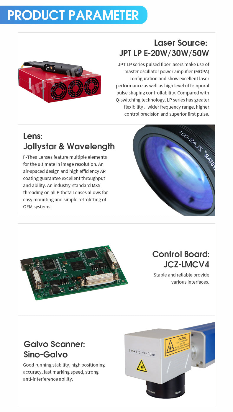 - Laser Source: 20W/30W/50W JPT LP-E