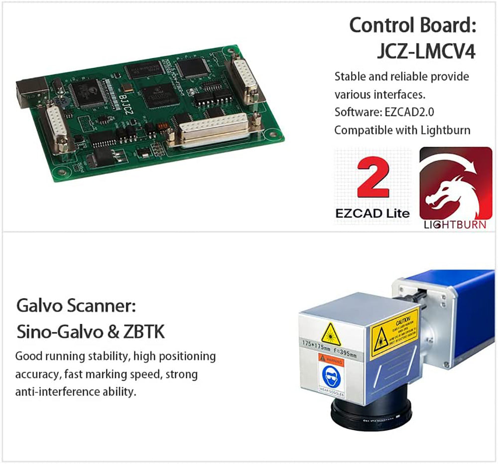 - Software:EZCAD2 (Lightburn Compatible) / EZCAD3